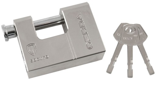 Kłódka Gerda Secure KSWT T60: masywny niklowany korpus trzpień ze stali hartowanej, chromowany bębenek z mechanizmem dyskowym odporny na kurz i zabrudzenia hartowany pierścień zabezpieczający bębenek trzy klucze w komplecie