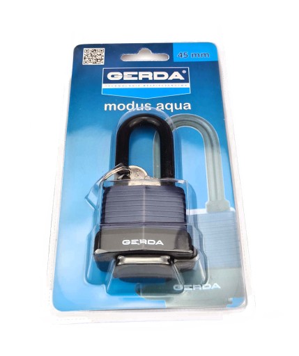 Kłódka Gerda KSM S45AH60 Wodoodporna z długim pałąkiem Kłódka stalowa modułowa Gerda KSM S45AH60 serii modus aqua, przeznaczona do ogólnych zastosowań oraz zabezpieczeń mienia. Doskonale sprawdza się na działkach, w ogrodach czy do zamykania bram i furt. Odporna na warunki atmosferyczne, trudna do przecięcia i uszkodzenia. Wydłużony pałąk został wykonany pałąk ze stali hartowanej o średnicy ∅ 8.4mm. Do kłódki dołączone są 3 klucze.