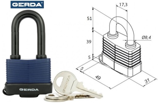 Kłódka Gerda KSM S45AH60 Wodoodporna z długim pałą