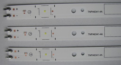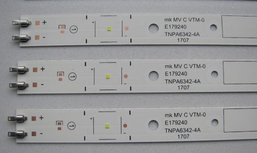 Podświetlanie matrycy / listwy LED Panasonic TNPA6341-4A plus TNPA6342-4A. Listwy NOWE, w 100% sprawne - wysokiej jakości zamiennik wykonany na aluminium (lepiej odprowadza ciepło). Dodatkowo wszystkie listwy podklejone są specjalna taśmą termo-przepuszczalna firmy 3M żeby dobrze dolegały do obudowy i odprowadzały ciepło.