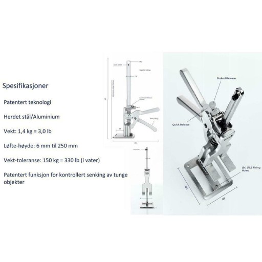 Znakomity udźwig: Podnośnik do drzwi Podnośnik do płyt Podnośnik do szafek Przy udźwigu do 150 kg zakres zastosowań jest praktycznie nieograniczony.