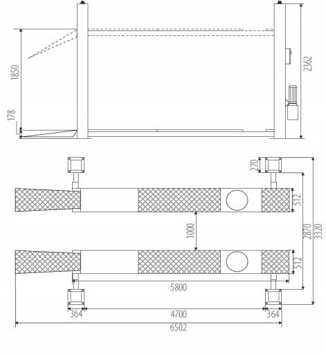 Четырехколонный подъемник 6,4 т для геометрии PO640.