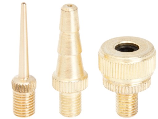- W komplecie adapter do wentyli rowerowych, igła do pompowania piłek i końcówka do pompowania materaców.