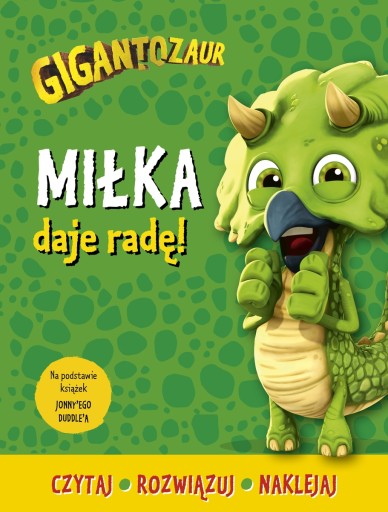 Czy istnieją książki o dinozaurach idealne dla czterolatka? Przekonaj się o tym, zanurzając się w opowieść prosto z pradawnej Kretanii, fikcyjnej wyspy zamieszkanej przez niezwykłe stworzenia. Znajdziesz tam nie tylko tajemniczego Gigantozaura, który budzi emocje i rozpala wyobraźnię, lecz także inne, dużo mniejsze dinozaury. Każdy z nich – Miłka, Czupur, Rudzia i Dudek – przeżywa podstawowe radości i troski, które towarzyszą także dzieciom w wieku przedszkolnym. Dzięki temu książki z serii Gigantozaur stanowią niebywale ciekawą i ważną lekturę dla kilkulatka. Miłka daje radę” to opowieść o małej dinozaurzycy, która uwielbia tańczyć, śpiewać i bawić się z przyjaciółmi. Czeka ją jednak nie lada wyzwanie: jej starszy brat Tops musi przygotować ją do ważnego wydarzenia, którym jest... triceratopsowy sprawdzian. Oby tylko Miłka potraktowała to poważnie... Gdy ich przygotowania zwracają uwagę gigantozaura i Tops wpada w tarapaty, to właśnie Miłka ratuje sytuację. Książka oprócz opowiastki zawiera ciekawe i zróżnicowane zadania dostosowane do wieku odbiorcy oraz zestaw okrągłych naklejek, które należy umieścić we wskazanych miejscach. Dzięki dodatkowym atrakcjom najmłodsi fani dinozaurów mogą urozmaicić lekturę innymi aktywnościami. W każdej z książeczek z serii "Czytaj, rozwiązuj, naklejaj" dziecko ma okazję poznać bliżej jednego z czworga przyjaciół z Kretanii. Są nimi triceratops Miłka, brachiozaur Dudek, ankylozaur Rudzia oraz parazaurolof Czupur, bohaterowie animowanego serialu dla najmłodszych Gigantozaur”. Ilustrowana opowiastka i ciekawe zadania zachęcą młodych fanów dinozaurów do dalszych poszukiwań, mogą być punktem wyjścia do pogłębienia wiedzy o dinozaurach. Naładem wydawnictwa Olesiejuk ukażą się również następujące tytuły z cyklu Czytaj, rozwiązuj, naklejaj”. Gigantozaur. Dudek chce urosnąć!” Gigantozaur. Czupur ma misję!” Gigantozaur. Rudzia jest pomysłowa!”