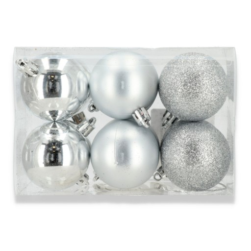 СЕРЕБРЯНЫЕ ДЕКОРАТИВНЫЕ НОВОГОДНИЕ ШАРЫ 12 ШТ.
