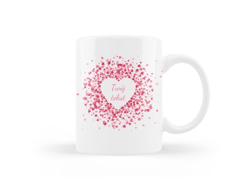 Kubek personalizowany z nadrukiem dwustronnym na Walentynki. Dane do personalizacji można zamieścić w notatce do zamówienia lub wysłać mailowo.