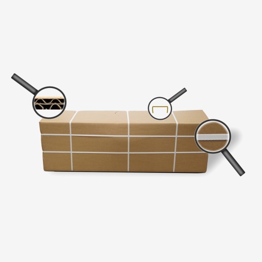- Wytrzymałej, wewnętrznej tektury falistej "BC" przeznaczonej do ciężkich przedmiotów i zapewniającej im odpowiednią amortyzację.