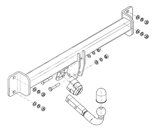 - W zestawie znajdują się wszystkie elementy niezbędne do poprawnego montażu haka holowniczego STEINHOF, nic więcej nie potrzebujesz