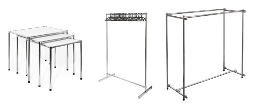 - System pozwala nam tworzyć różnorodne konstrukcje, takie jak wieszaki przyścienne i wolnostojące, gondole, ekspozytory, stojaki, regały z półkami, przymierzalnie, stoliki oraz wiele innych.