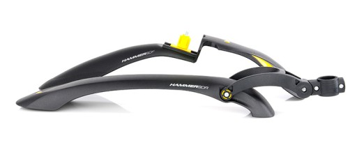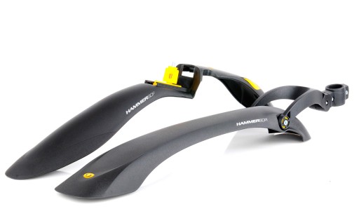 Błotnik przedni HAMMER SDF to super lekki błotnik o oryginalnej, motocrossowej optyce, zaprojektowany specjalnie dla nowej generacji rowerów z amortyzowanymi widelcami. Szybki montaż i wygodne użytkowanie umożliwia zatrzaskowy adapter SPEEDclick, który wkręcany jest do trzonu widelca. Błotnik podczas jazdy skręca wraz z kołem, jego płetwa cały czas znajduje się w niewielkiej odległości od opony zapewniając optymalną ochronę podczas jazdy w każdym terenie. Błotnik stosować można również z widelcami Manitou.