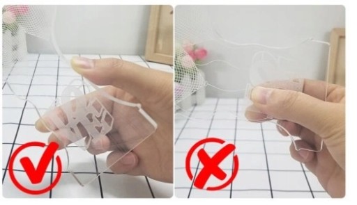 Jedna strona tablicy świetlnej jest pokryta folią ochronną. Po otrzymaniu produktu prosimy o zerwanie folii ochronnej , aby odsłonić przezroczystą akrylową tablicę oświetleniową, zanim będzie można jej użyć. (Jeśli folia ochronna jest trudna do oderwania, można ją namoczyć w wodzie, aby ją zmiękczyć, a następnie oderwać)