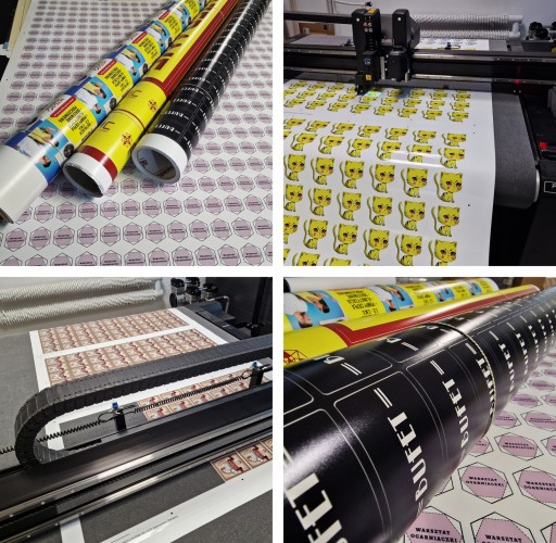 - Projekt naklejki nacinany jest po obrysie kształtu, zamówienie otrzymują Państwo w formie folii nawiniętej na rolę.