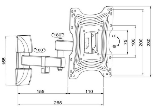 Uchwyt ścienny do telewizora przeznaczony do ekranów LCD i LED o przekątnej od 19 do 42 cali.