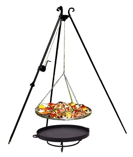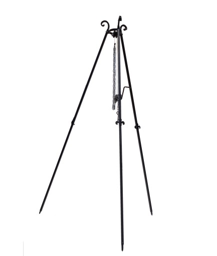 – TRÓJNÓG – o wysokości 180 cm- solidna, stabilna konstrukcja utrzymująca ruszt nad paleniskiem; wyposażony w korbkę do regulacji wysokości rusztu nad paleniskiem