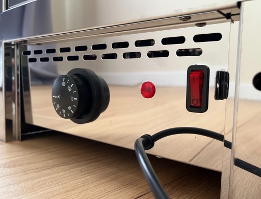 - Wędzarnia wyposażona jest w prosty i niezawodny termostat analogowy.