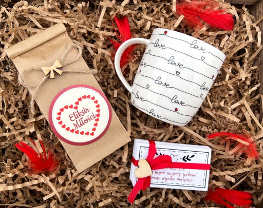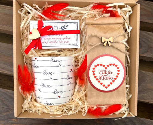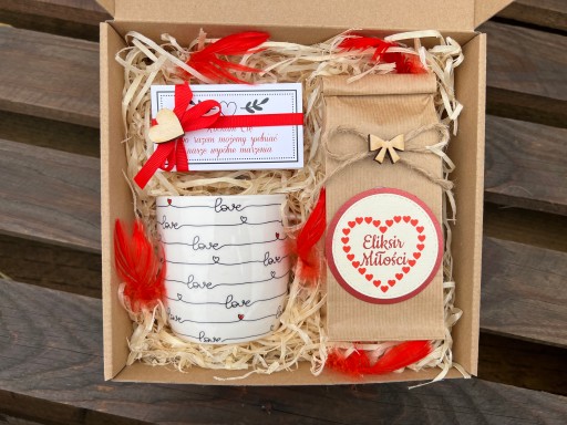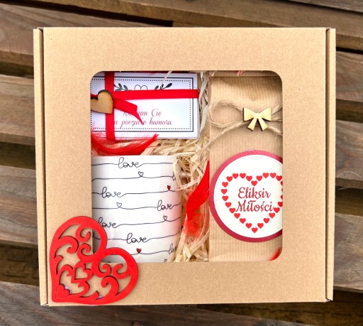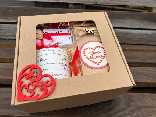 - całość zapakowana w pudełko - eko box z czerwonym serce.