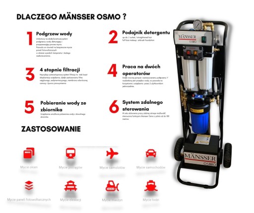 MANSSER OSMO - URZĄDZENIE DO MYCIA PANELI FOTOWOLTAICZNYCH I SZYB NA WYSOKOŚCIACH WODĄ DEMINERALIZOWANĄ.