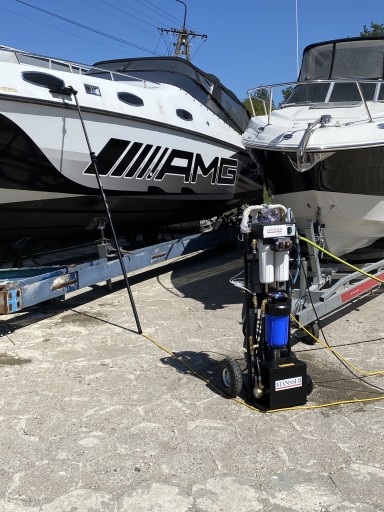 MANSSER jest napędzany silnikiem elektrycznym i wysoko przepływową obrotową pompą wytwarzającą do 8l/min czystej wody. W porównaniu do konkurencji urządzenie to posiada dwukrotnie mocniejszy silnik i pompę.
