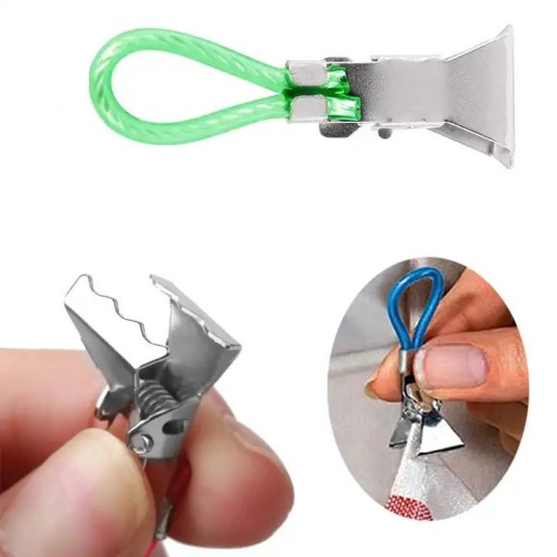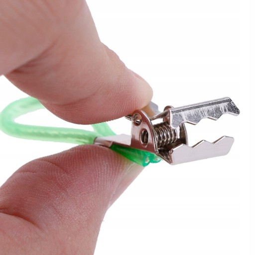 Każdy klips wykonany jest z gumowego barwnego sznureczka przymocowanego do metalowej żabki. Ząbki żabki są delikatnie zaokrąglone by nie uszkodzić materiału.