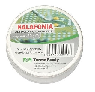 Kalafonia aktywna z dodatkiem aktywatorów ułatwiających lutowanie. Produkt posiada aktywność zbliżoną do pasty lutowniczej. Kalafonia wspomaga proces lutowania, zapobiega utlenianiu się złączy, eliminuje powstawanie zimnych lutów.