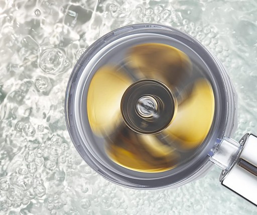 - Daje efekt obrotowy wody dzięki wbudowanej turbinie,