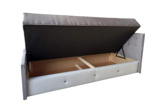 - Wysokiej jakości tapczan, wykonany z pianki poliuretanowej T30. Zastosowano w nim sprężyny bonellowe cechujące się dużą wytrzymałością. W tapczanie wykorzystano drewnianą ramę, zapewniającą stabilność oraz długie lata użytkowania. Tapczan wyposażony jest również w automat ułatwiający rozkładanie.