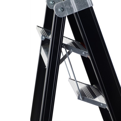 - Zwiększona stabilność dzięki zamkniętemu systemowi zawiasów przedniej i tylnej części drabiny