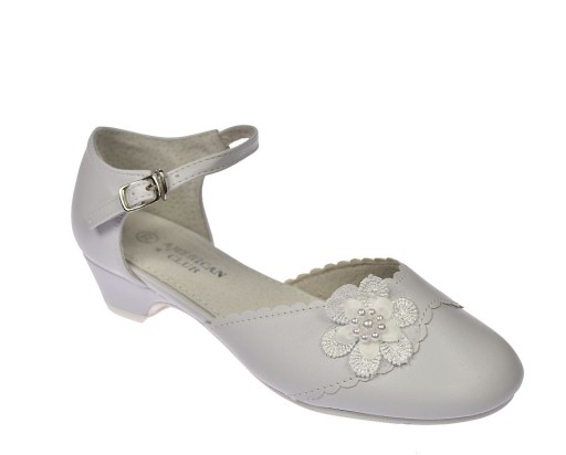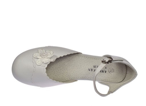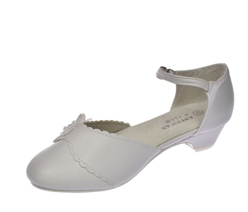 Buty komunijne białe balerinki dziewczęce białe na obcasie zapinane na pasek marki American Club