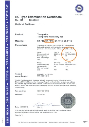 - Mata do skakania: tkanina polipropylenowa PP, gramatura 270 g/m.kw.(najgrubsza z możliwych), na licencji USA