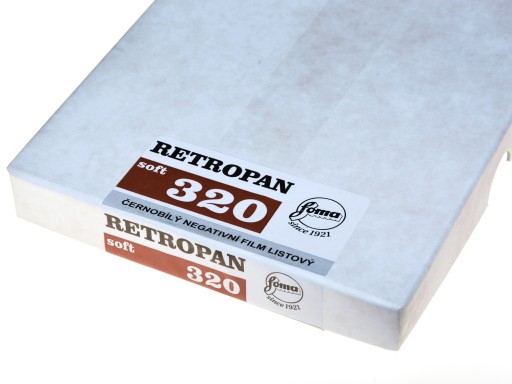 Oferujemy: Foma Retropan 320 soft 4x5"(10,2x12,7cm)/50 błona cięta do aparatów wielkoformatowych, data: 02.2024 r.