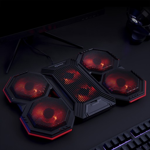 FN-41 posiada aż 6 symetrycznie rozmieszczonych wentylatorów. Układ ten pozwalana odbiór nadmiar ciepła niezależenie do konstrukcji i usytuowania CPU i GPU w laptopie, a przy tym nie wytwarza denerwującego głośnego szumu. Dzięki konstrukcji zapewniającej optymalny przepływ powietrza, możesz być pewien, że Twój laptop nie przegrzeje się nawet podczas długich rozgrywek LAN, a wyjątkowy gamingowy design i czerwone podświetlenie produktu nada każdemu miejscu pracy unikatowy charakter.