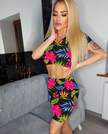 Spódniczki MIDI ołówkowej + krótkiego topu z krótkim rękawem.
