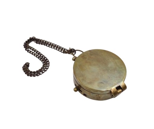 Zapraszamy do kupna stylowego kompasu mosiężnego na łańcuszku, w etui ze skóry naturalnej. Przedmiot bardzo elegancki, tarcza przejrzysta, w kolorze miedzianym.