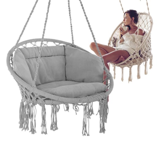 ✅ KRZESŁO WISZĄCE ✅ DUŻA MEIĘKKA PODUSZKA ✅ FOTEL BRAZYLYJSKI ✅ UDŹWIG 150 KG ✅ IDEALNY DO POKOJU SALONU ✅ FOTEL OGRODOWY ✅ POMAGA SIĘ ZRELAKSOWAĆ I ODPRĘŻYĆ ✅ MOCNY ✅ ŁATWY MONTAŻ ✅ PIĘKNA PLECIONA MAKRAMA