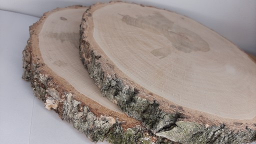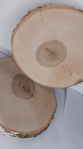 od 19 do 23cm cm, grubość ok 2-3cm. Plastry mogą posiadać naturalne małe pęknięcia. Krążek może się różnić od tego na zdjęciu, może mieć ciemną lub jasną korę, mogą mieć minimalne ubytki kory.