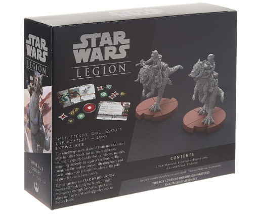 Within Star Wars: Legion - Tauntaun Riders Unit Expansion you’ll find two unique unpainted tauntaun rider miniatures, enough for one support unit, along with a new unit card for you to field in battle. Your tauntaun’s natural speed and defense mechanisms make them useful in a number of situations, of course, and this pack also contains three upgrade cards that give you the freedom to find a role for them that fits your particular battle plan.