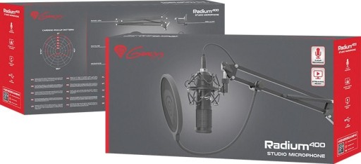 Myślisz o tym jak rozwinąć swój kanał na YouTube albo ulepszyć jakość swoich transmisji on-line? Nic prostszego. Genesis Radium 400 to wysokiej jakości mikrofon studyjny zapewniający wysoką elastyczność montażu i czystość nagrywanego dźwięku. Zadowoli każdego, początkującego jak i już zaawansowanego streamer ‘a. Zestaw składa się z mikrofonu, ramienia wraz z elementami mocującymi, koszyka antywstrząsowego, pop-filtru oraz gąbki.