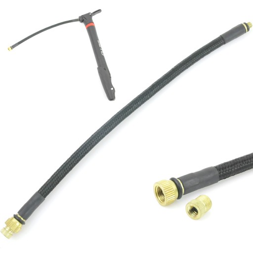 - Dzięki dodatkowej redukcji wężyk można stosować do wentyli rowerowych (DV) oraz samochodowych (AV),