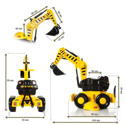 DZIECKO MOŻE STEROWAĆ RUCHOMĄ ŁYŻKĄ KOPARKI, OBRACAĆ SIĘ NA OBROTOWYM SIEDZISKU NAWET O 360 STOPNI, ORAZ PORUSZAĆ CAŁYM ZESTAWEM DO PRZODU I DO TYŁU ODPYCHAJĄC SIĘ NOGAMI !