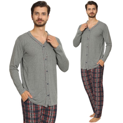 BAWEŁNIANA MĘSKA PIŻAMA CAŁA ROZPINANA Z DŁUGI RĘKAWEM I DŁUGIMI SPODNIAMI