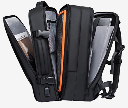 Plecak można rozłożyć na płasko, jak walizkę. Ułatwia to jego zapakowanie, a ubrania umieszczone w przegrodzie można łatwo zabezpieczyć za pomocą siateczkowej klapy zapinanej na zamek. W ten sposób nie ma obawy, że ubrania wypadną, gdy będziesz chciał wyciągnąć coś z plecaka.