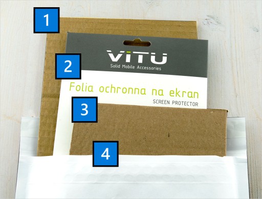 4️⃣ Zabezpieczająca koperta bąbelkowa z dwoma dodatkowymi kartonami usztywniającymi.