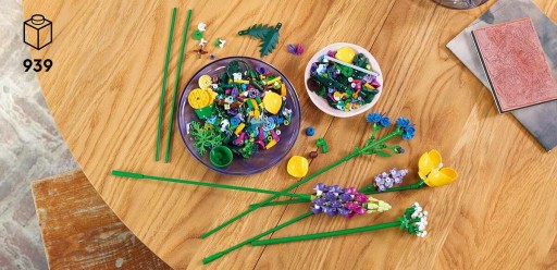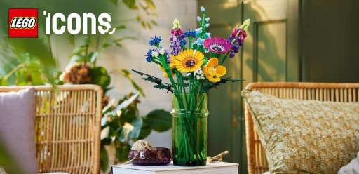 Złożony całkowicie ze szczegółowych klocków LEGO bukiet z polnych kwiatów obejmuje osiem gatunków kwiatów na regulowanych łodygach. Początkujący floryści i wielbiciele kwiatów mogą spędzić wiele godzin na budowaniu i odkrywaniu kwiatów inspirowanych chabrami, lawendą, makami walijskimi, trybulą leśną, paprocią skórzastą, gerberami, ostróżkami i łubinem. Po ukończeniu modelu kwiaty LEGO można ustawić w ulubionym wazonie, tworząc piękną ozdobę, która zasieje ziarno radości w każdym pomieszczeniu.