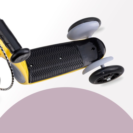 Dzięki odpowiedniemu rozłożeniu kół i wyważeniu hulajnogi, pojazd jest doskonale zbalansowany. Szeroko rozmieszczone tylne koła sprawiają, ze pojazd jest stabilny, co minimalizuje możliwość upadku. Jest to szczególnie ważne w przypadku Dzieci, które dopiero zaczynają swoją przygodę z hulajnogą. Kiedy Dziecko znudzi się jazdą na hulajnodze, jednym ruchem ręki możesz zamienić ją w jeździk.