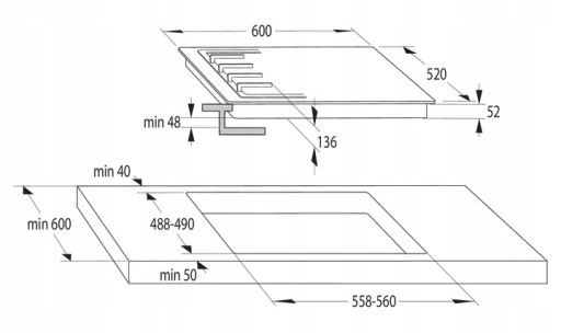- Rodzaj płyty: Gaz na szkle hartowanym