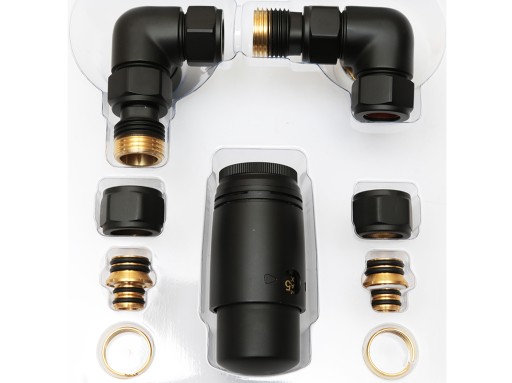 Ekskluzywny zestaw termostatyczny osiowy. Przeznaczony jest do podłączenia grzejników łazienkowych, dekoracyjnych, ale sprawdzi się również przy innych grzejnikach.