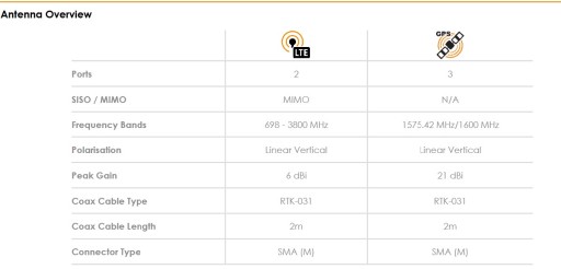 - LTE (2X2 MIMO) i GPS / GLONASS