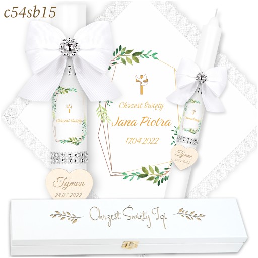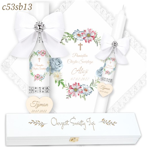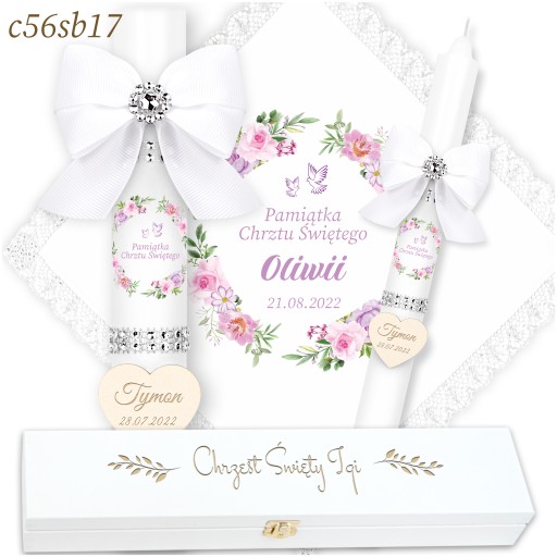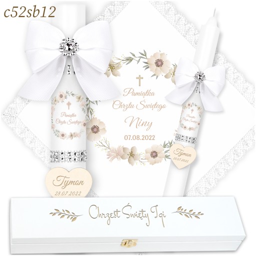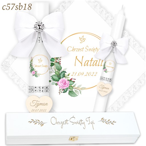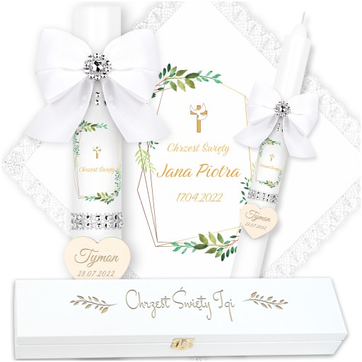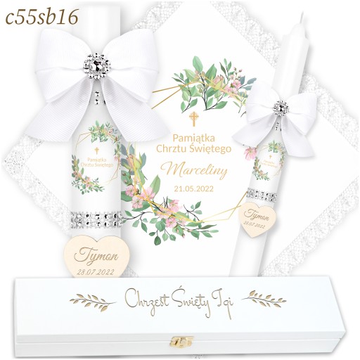 - owinięcie materiałem satynowym z napisem "Pamiątka Chrztu Świętego",