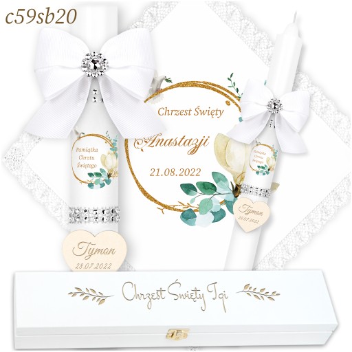SZATKA I ŚWIECA DO CHRZTU PAMIĄTKA CHRZTU ŚWIĘTEGO