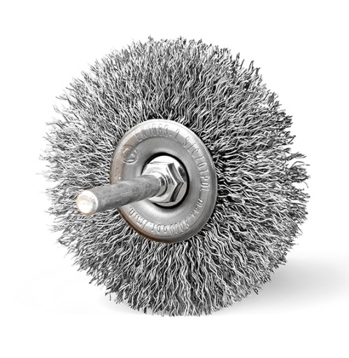 Szczotki tarczowe z trzpieniem lub z otworem przeznaczone są do pracy w trudno dostępnych miejscach. Im mniejsza średnica szczotki, tym większa możliwość penetracji niedostępnych miejsc.